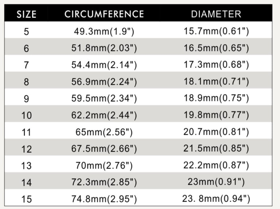 US Size: 5, 6, 7, 8, 9, 10, 11, 12, 13, 14, 15