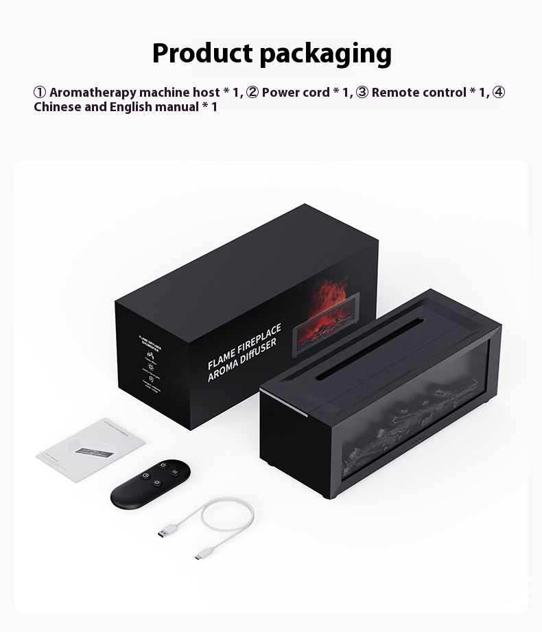- Functions: Humidification, Flame Simulation, Aromatherapy, Timer, Remote Control