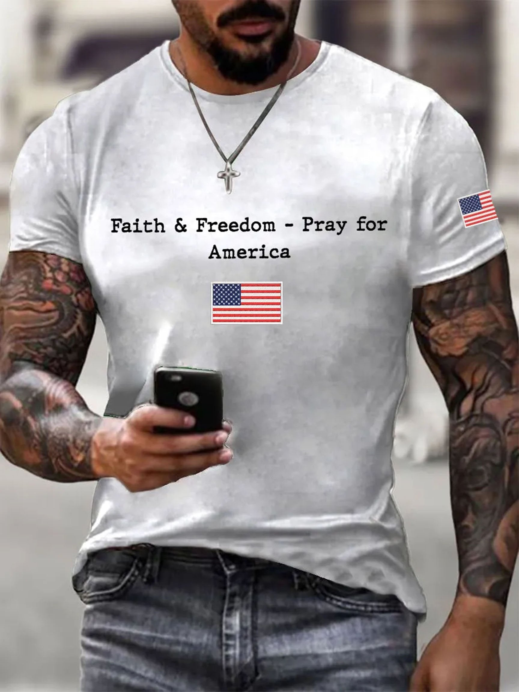 Men's Faith And Freedom Pray For America Printed Round Neck T-Shirt