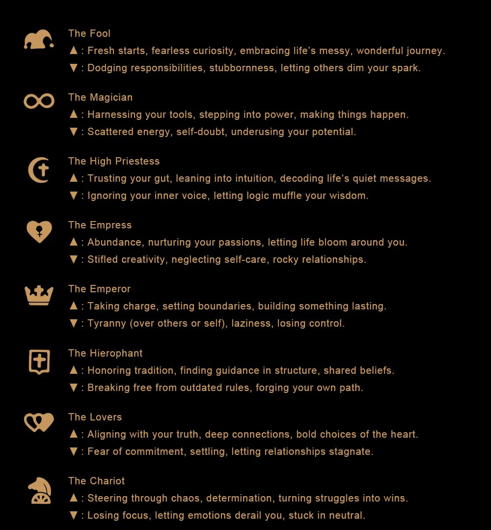 22 Major Arcana symbols adorn the outer ring; the brass center mirrors upright/reversed energies. Your Tarot deck, condensed—wisdom at a glance, always within reach. 💫